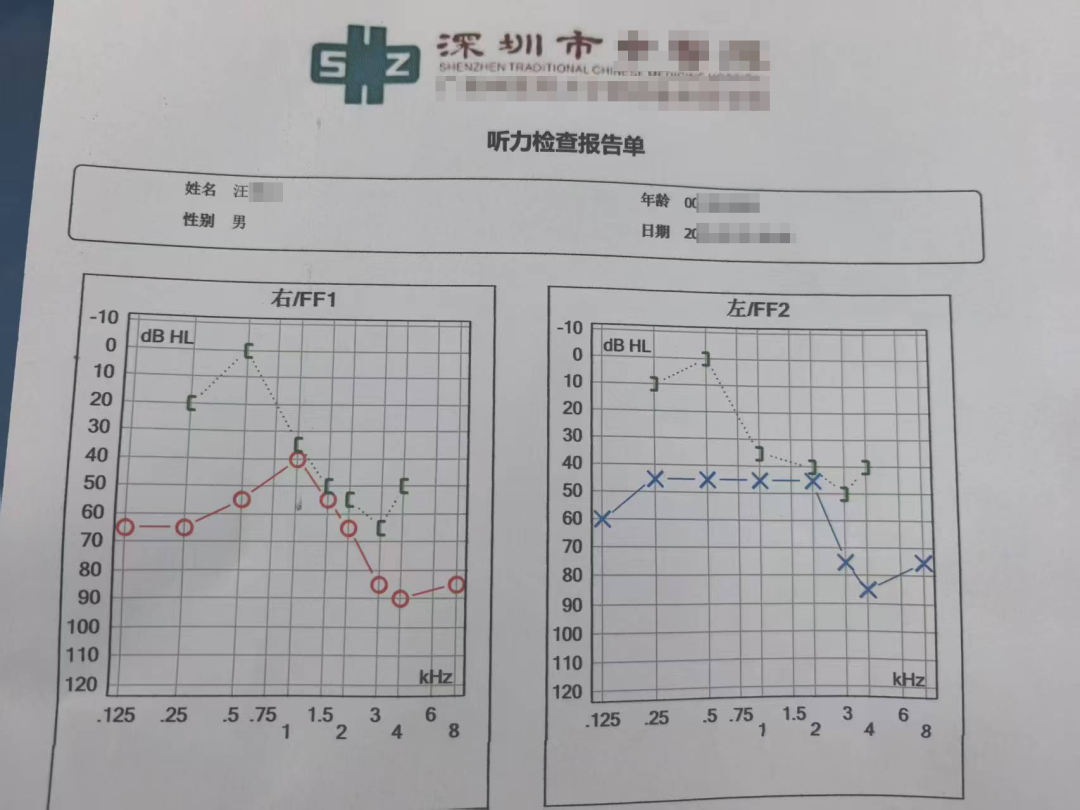 趁着就诊咽喉问题的机会,家人安排了听力筛查,结果提示双耳均存在较严重听力损失。