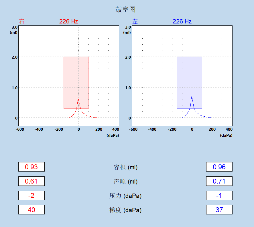 声导抗显示(见下图)双耳A型。通过检查结果我们告知张爷爷外耳和中耳都很健康。