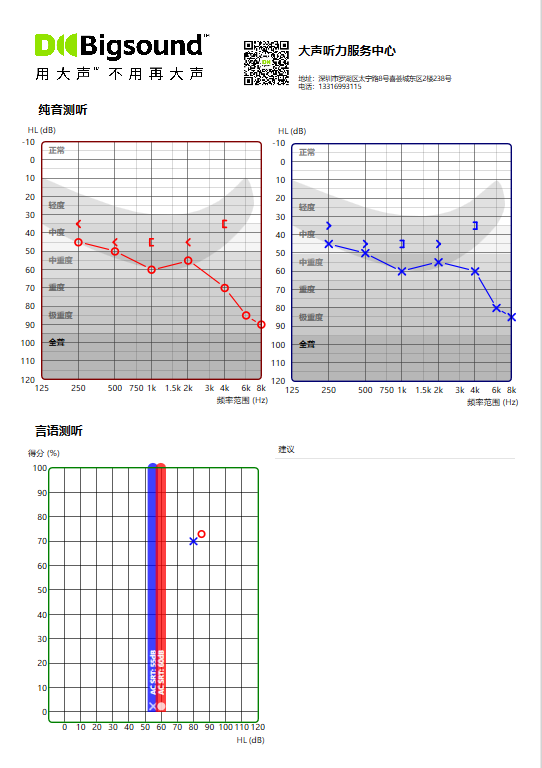 对于张爷爷这个年龄来说,这个言语识别率算很高了,说明张爷爷很适合佩戴助听器。